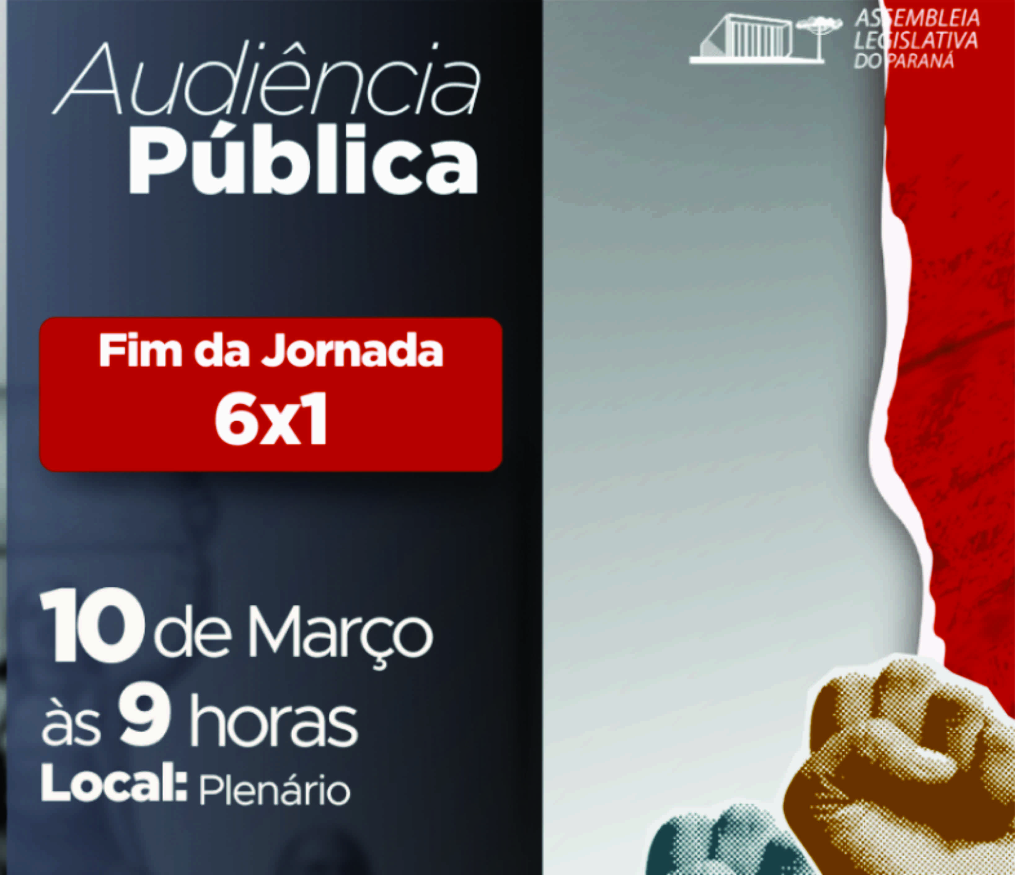 Curitiba 8 horas atrás Audiência Pública na Assembleia Legislativa debate fim da escala 6×1 e redução da jornada de trabalho