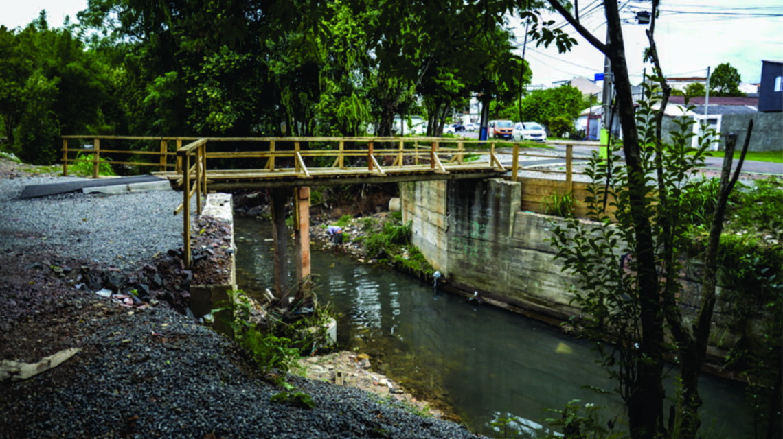 Moradores do bairro Xaxim foram beneficiados com a construção de uma nova passarela de pedestres sobre o Ribeirão dos Padilha. A estrutura antiga havia sido afetada devido às fortes chuvas, que elevaram o nível do rio e comprometeram a estrutura.